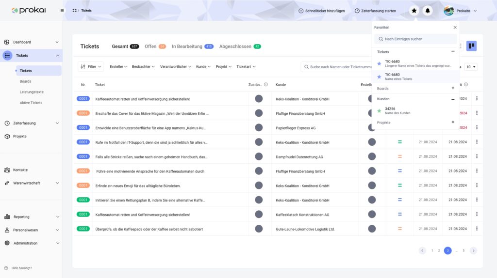 Ob Zeiterfassung, HR, Projekte oder Tickets – prokai vereint alle zentralen Prozesse für Ihr Team in einem modernen ERP-System. Einfach, effizient und zukunftssicher.