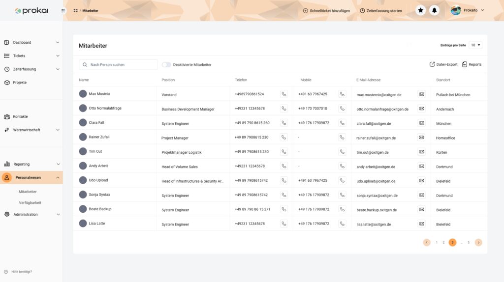 Verwalten Sie Ihr Personalwesen zentral an einem Ort. Mitarbeiterkartei, Urlaub, Fehlzeiten und Co. lassen sich in prokai nicht nur super organisieren, sondern ermöglichen auch die Verknüpfung von Mitarbeitern und Teams mit Projekten, Tickets, Zeiterfassung und weiteren Prozessen. Maximale Effizienz.